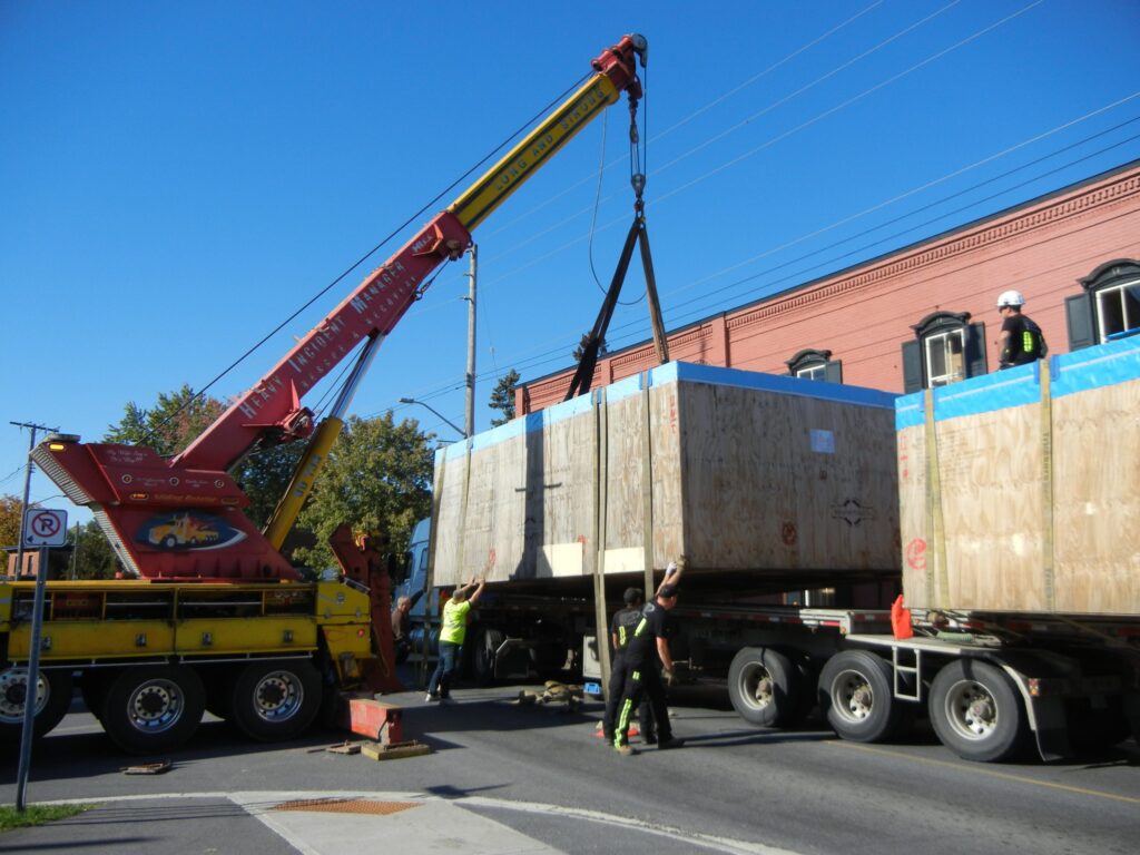 High Street was blocked off for hours between the intersections at Main Street and Mill Street while the problem was handled. Large trucks coming from the highway were diverted around the blockage as far back as Aberdeen Road, and a sliding rotator tow truck came out to help heave the cargo back onto the truck bed. Once the cargo was resituated, the straps were tied back down, and the transport went on its way.