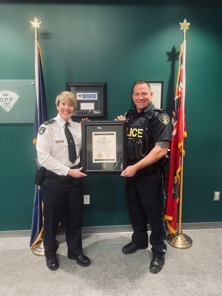 Sergeant Alain Potvin of the Hawkesbury detachment of the Ontario Provincial Police (OPP) was awarded a citation of bravery for rescuing a family from a vehicle submerged along a flooded dirt road in 2020.