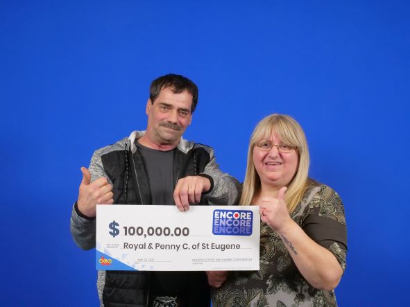 The St-Eugène couple won on the Encore draw for their March 26 649 ticket. Six of the seven Encore numbers were a match and that meant a $100,000 prize for them.