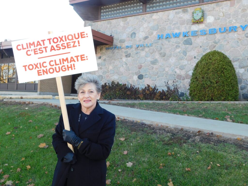 Joined by Councillor Lawrence Bogue, Mayor Assaly began her daily protest walk on Tuesday, November 9, “after some long hard thinking.” She said the noon-hour protest is meant to draw public attention to the “toxic atmosphere” that exists both at the municipal office and also on Hawkesbury council.