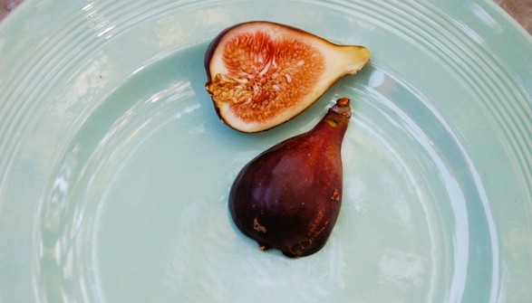 What is a fig? First, it’s a relative of the mulberry. Unusually, fig trees do not produce blossoms, say, like an apple tree. The fig itself is a sort of inverted strawberry: it’s more flower than fruit, with its flesh folded in on itself.